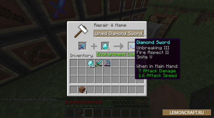 Мод на сломанные предметы Ruined Equipment делает предметы имеющие нулевую прочность разрушенными или дает вам возможность отремонтировать их. Так же вы сможете увековечить данные предметы любым удобным вам способом.